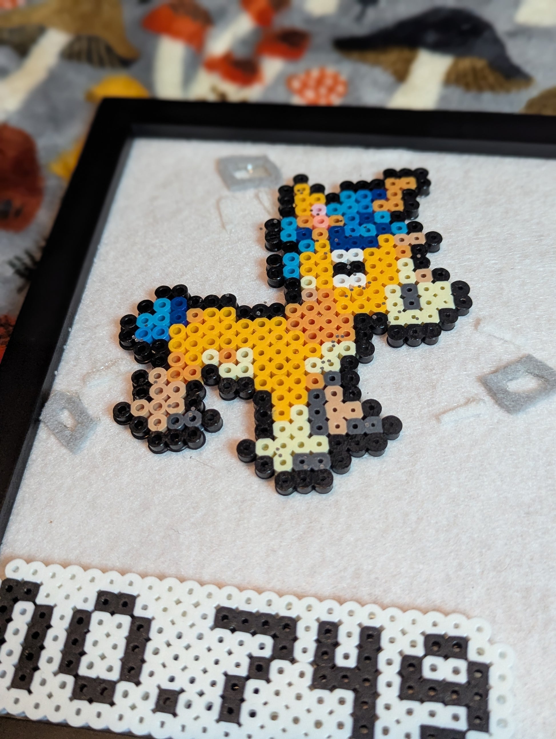 This donkey was just so nice, he became a shiny!! (woah!! wait... that's not really how that works) This display features perlers, fun shiny details (like the game, with the donkey having sequins on him, and surrounded by the shiny entrance you get when you encounter one!) and a real trading card with him on it! He's really the star of the show!